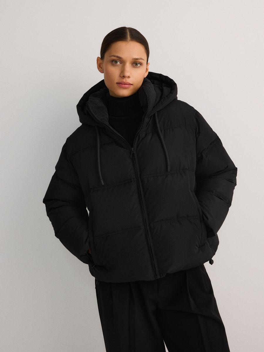 Puchowa kurtka z kapturem Kolor czarny RESERVED 637AY 99X
