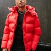 Długa puchowa kurtka damska z futrem kolor Czerwony Perso