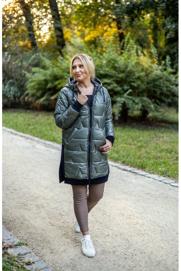KURTKA PIKOWANA DŁUGA DAMSKA | KHAKI