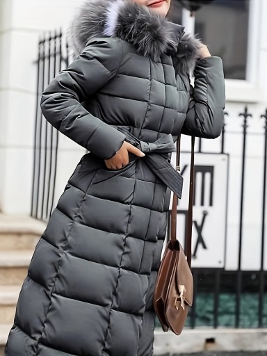 KURTKA ZIMOWA DAMSKA DŁUGA PIKOWANA PARKA PUCHOWA CIEPŁA Z KAPTUREM WIĄZANA • Cena, Opinie Allegro