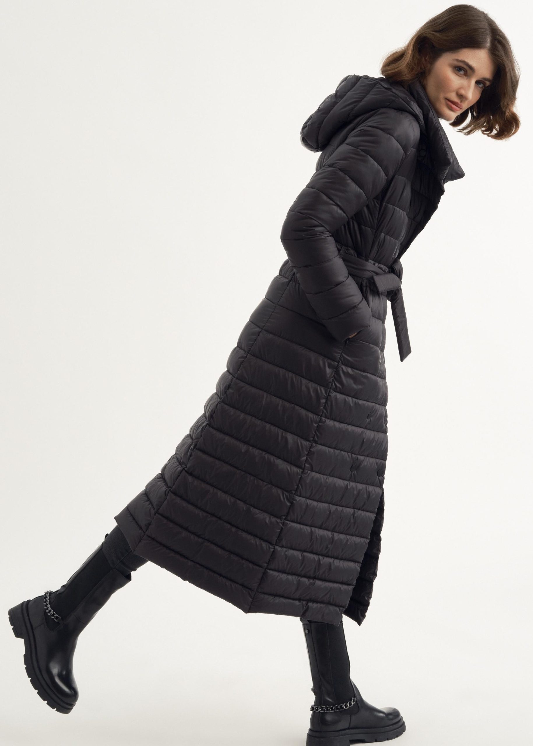 długa kurtka puchowa damska z kapturem