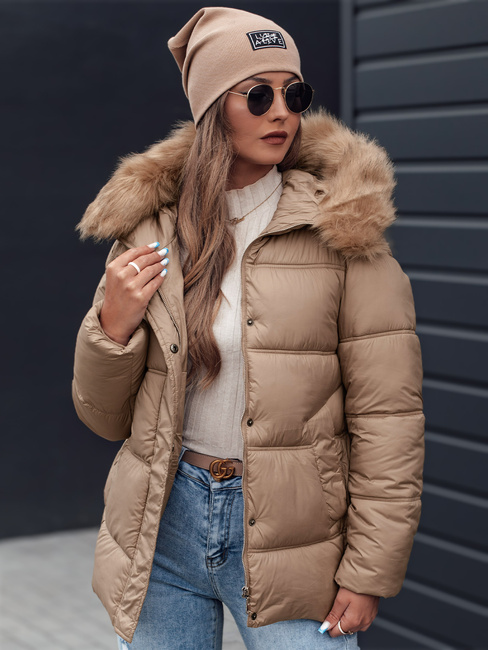Kurtka damska zimowa NORDKOLL pikowana z kapturem beżowa Dstreet TY4709