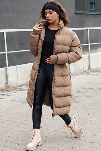 Lange Damen Winter Steppjacke FABWARM beige Dstreet TY4621
