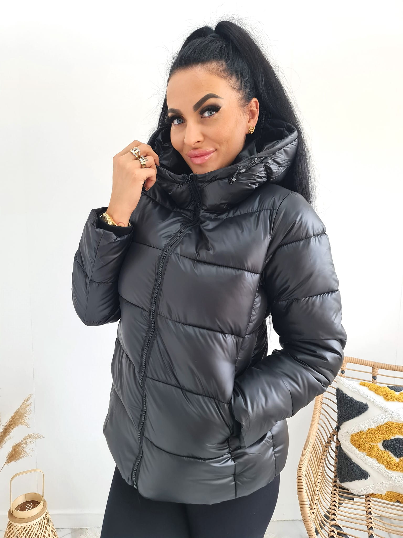 Klasyczna krótka kurtka zimowa Houston z kapturem czarna – Stylowo