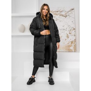 Długa puchowa kurtka damska z futrem kolor Czarny Perso