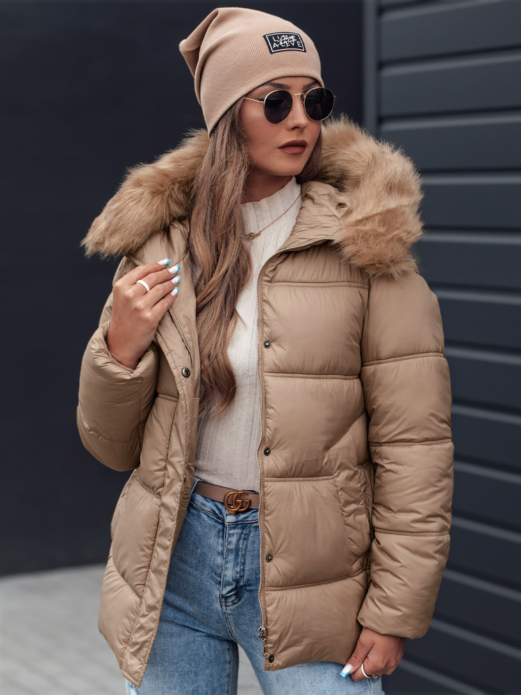 Kurtka damska zimowa NORDKOLL pikowana z kapturem beżowa Dstreet TY4709