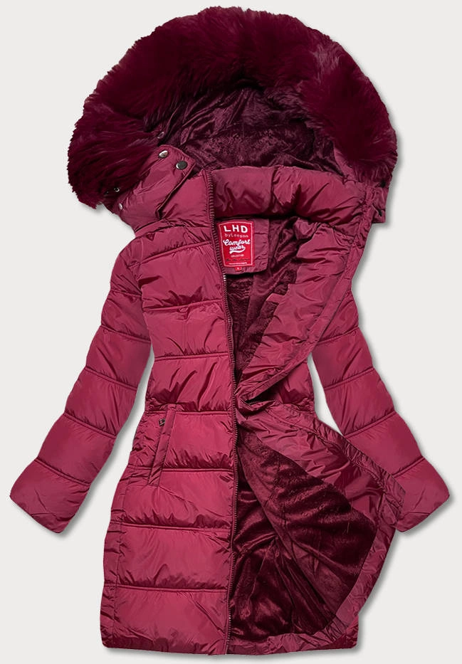 Puchowa zimowa kurtka damska bordowa (2M 051) LHD odcienie czerwieni