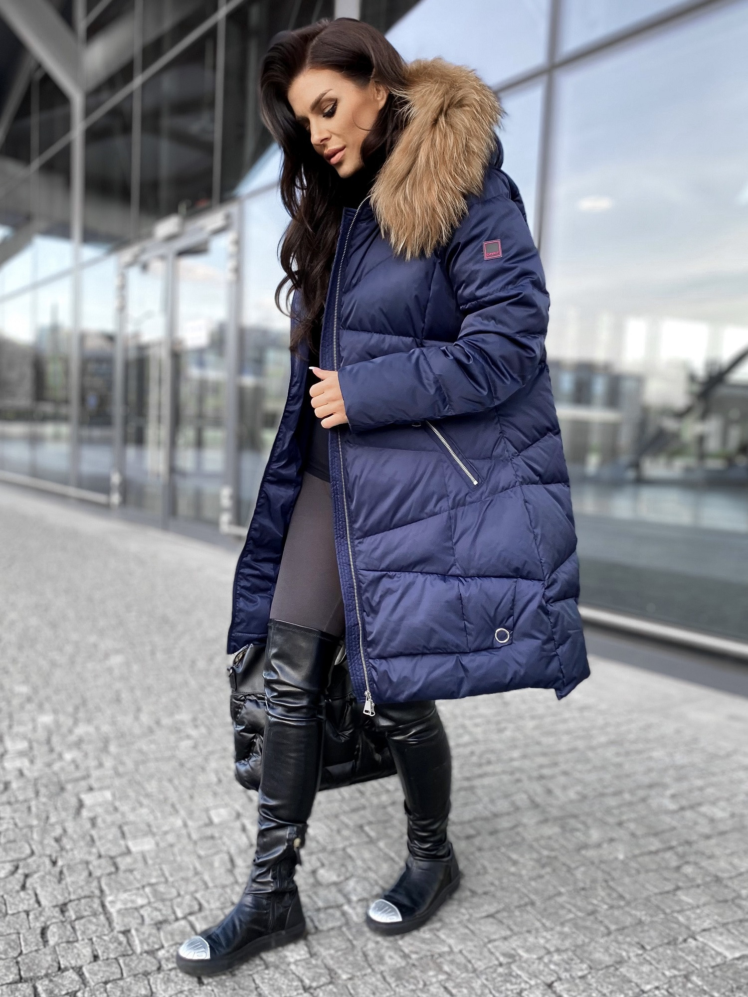 Kurtka Puchowa z Jenotem granatowa damska sklep internetowy
