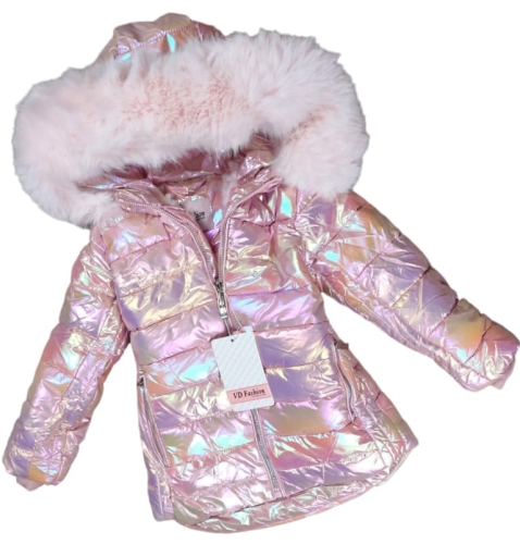 Błyszcząca kurtka dziewczęca zimowa z futerkiem