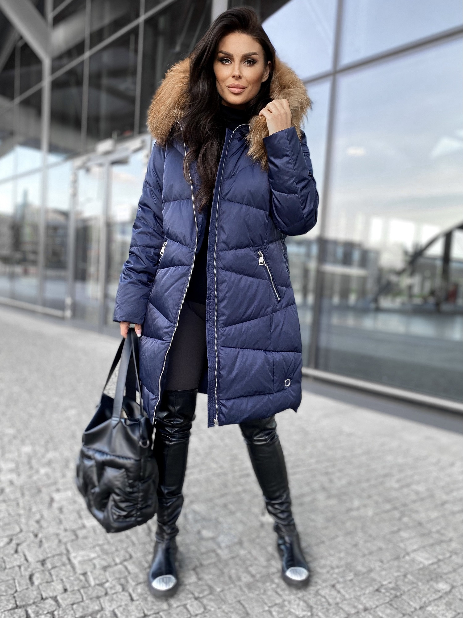 Kurtka Puchowa z Jenotem granatowa damska sklep internetowy