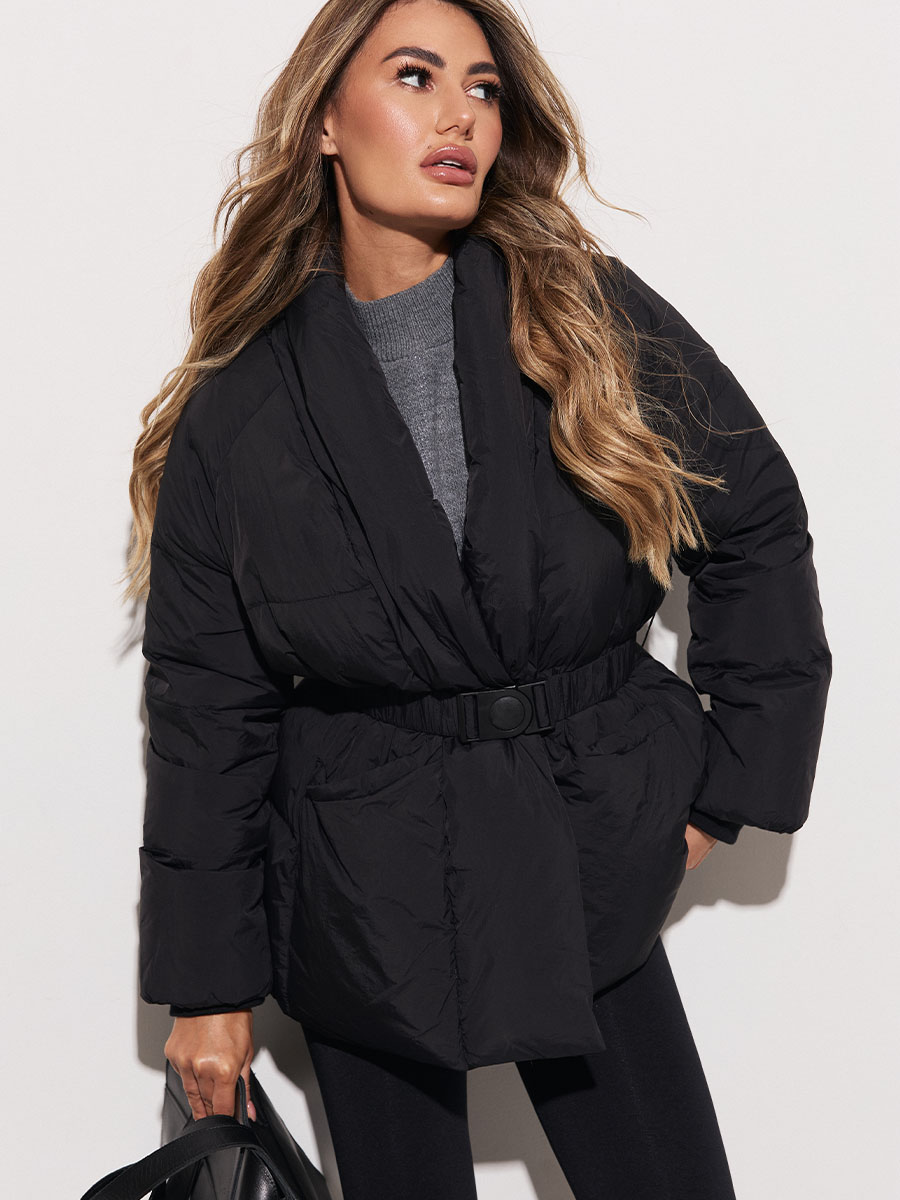 Kurtka puchowa z paskiem w kolorze czarnym w sklepie One by One