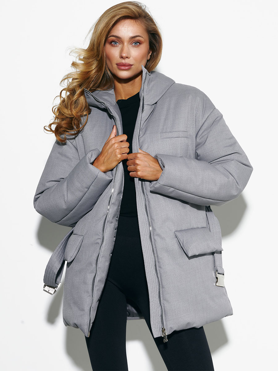 Kurtka puchowa z paskiem w kolorze szarym w sklepie One by One