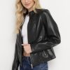 Brązowa Ramoneska Kurtka z Ekoskóry Zapinana pod Szyją Orifaga