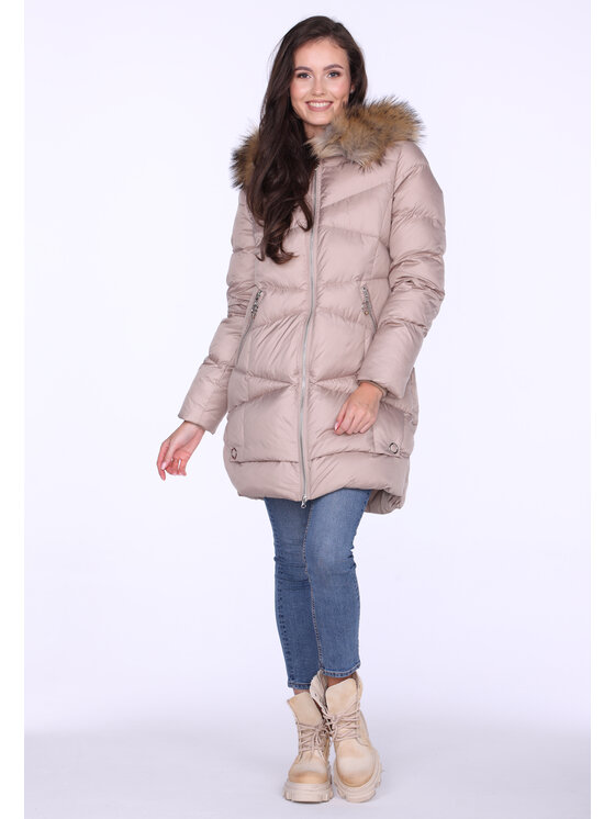 Perso Kurtka puchowa LEKKO TALIOWANA ELEGANCKA PUCHOWA KURTKA DAMSKA Beżowy Fitted Fit |