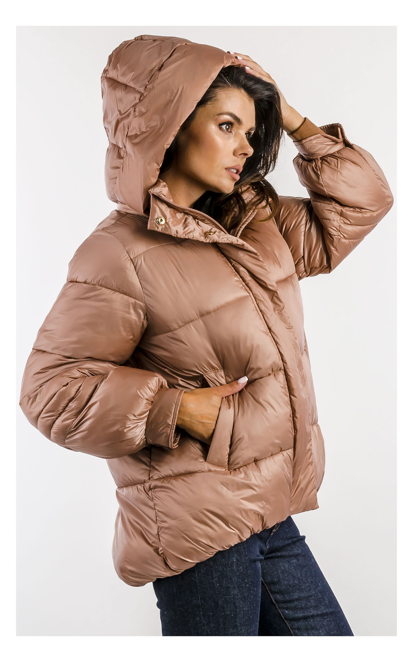 Kurtka TWINSET asymetryczna pikowana z kapturem różowa EGO IST IN